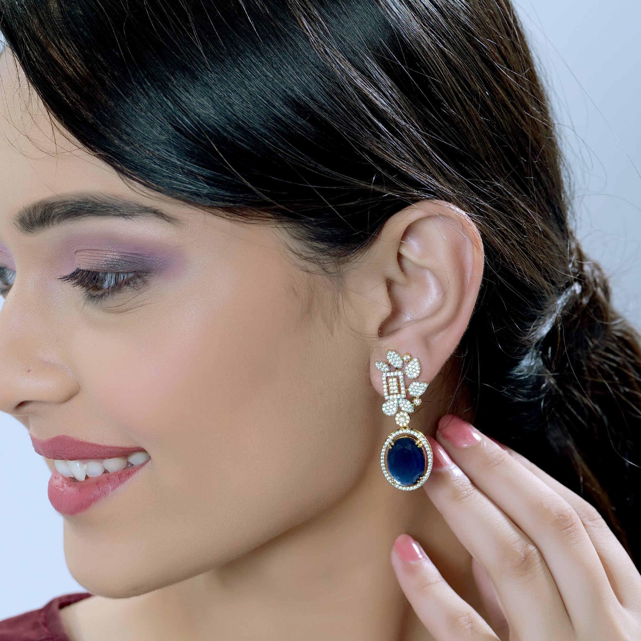 Indulge in elegance with our Rhodium-Plated CZ Exquisite Dangler Earrings. Sparkling cubic zirconias dangle delicately from a rhodium-plated base, adding a touch of luxury to any outfit. Perfect for formal events or a touch of sophistication in your everyday look. Elevate your style with these exquisite earrings.