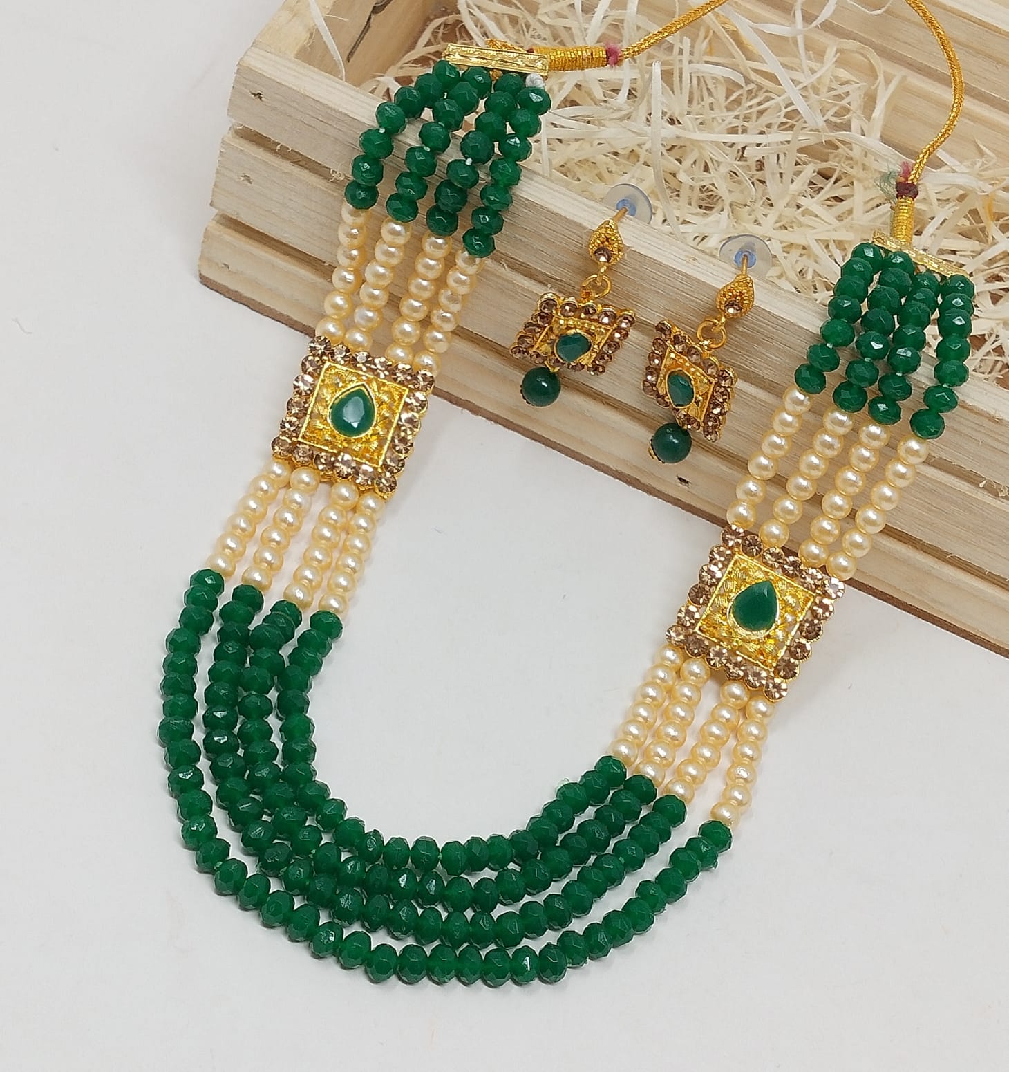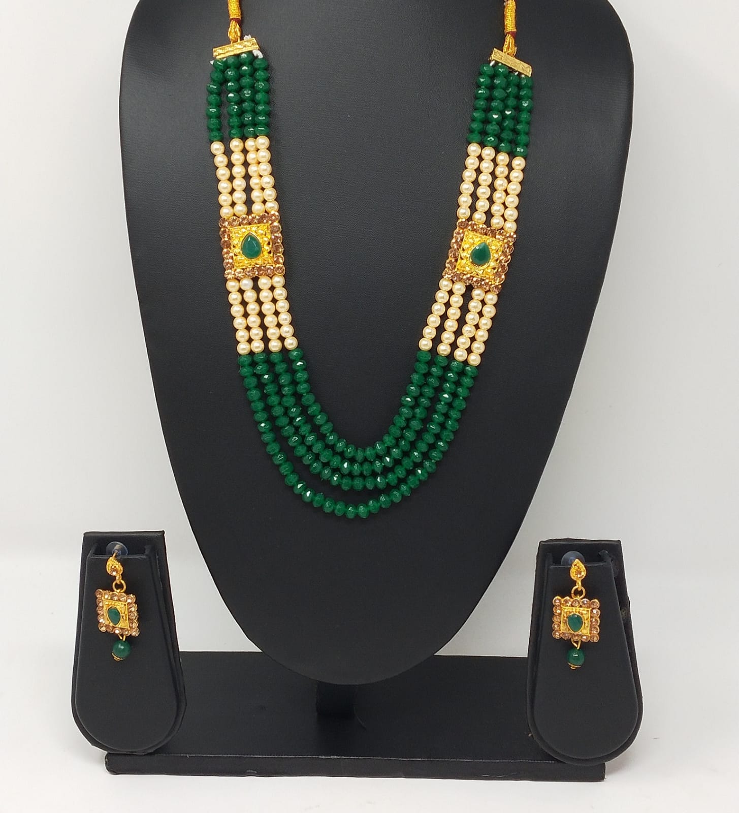Don’t be a wallflower – stand out from the crowd with this Royal Green Pearl Long Jewelry Set! Perfect for stylish occasions, this set will have you shimmering and shining like the royalty you are. So deck up and dazzle ’em!