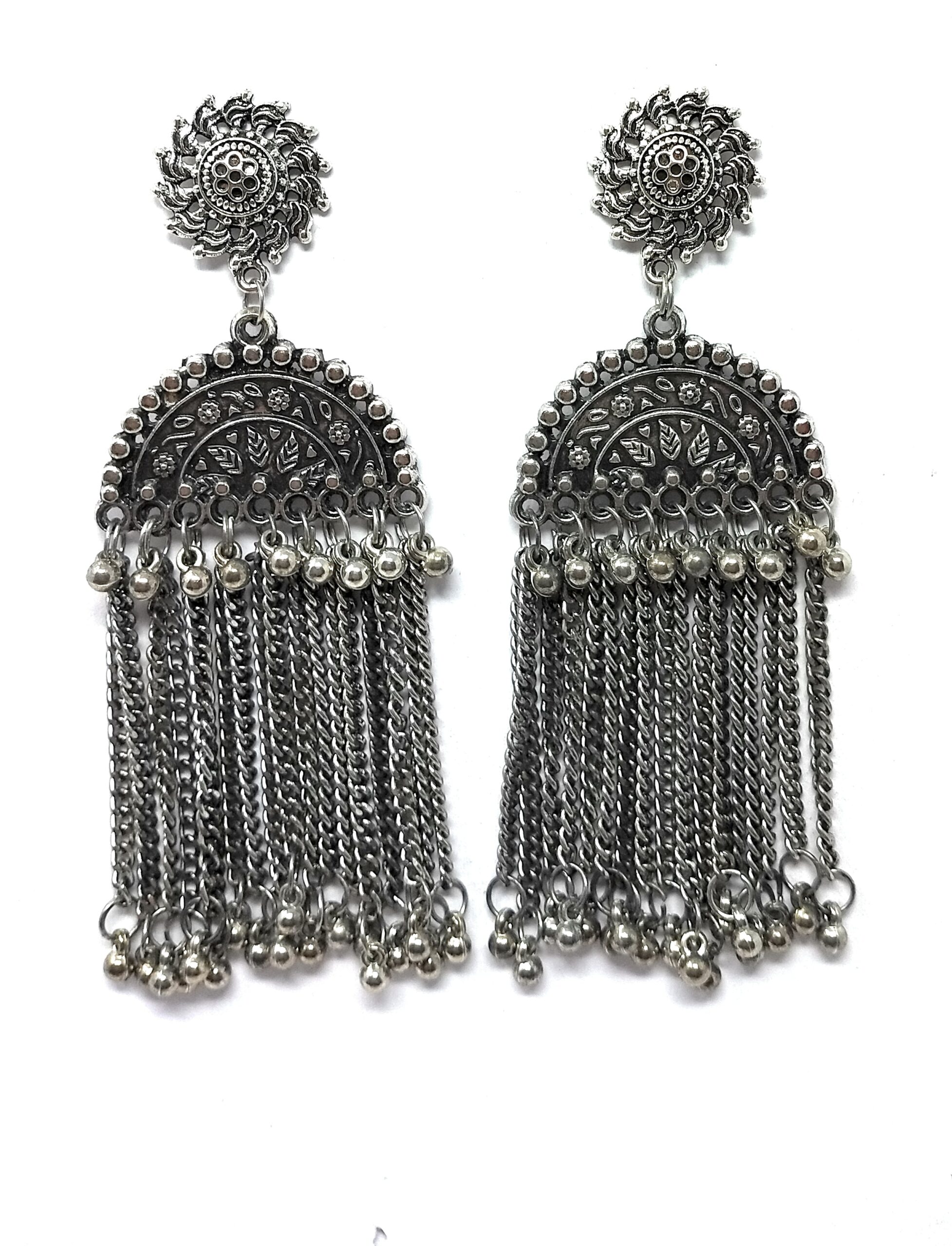 These silver plated, oxidized Chandbali earrings will add a beautiful, traditional touch to any look. With a classic design, they’re perfect for a special occasion, or just to show off your unique style.