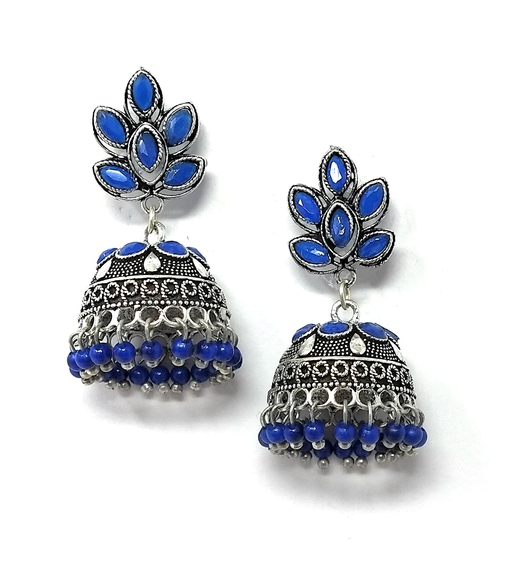 Look elegant and sophisticated with these stunning Silver Plated Oxidized Jhumki Earrings. Crafted from silver-plating and oxidized for a luxurious finish, they will instantly add grace and glamour to any look.