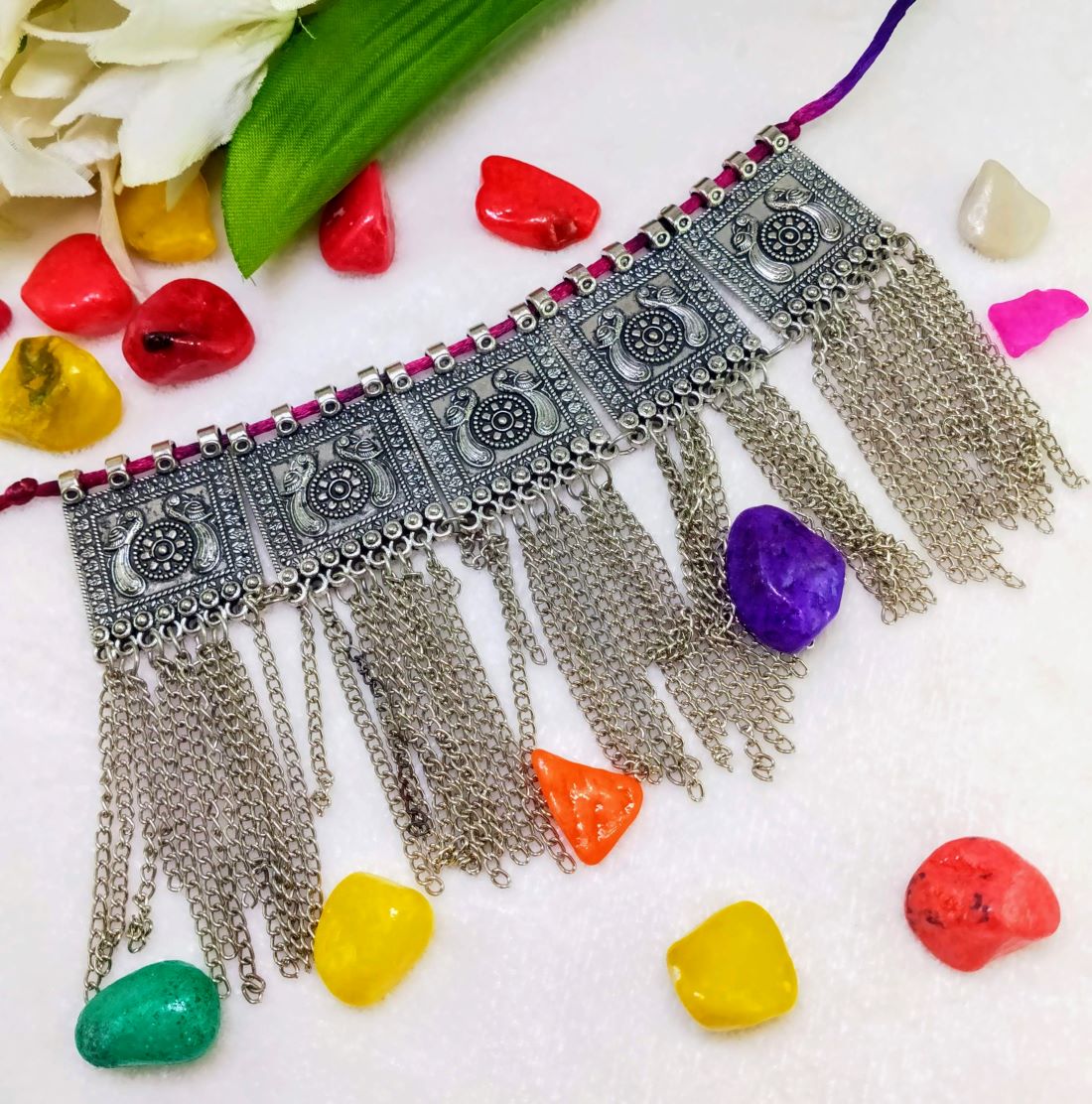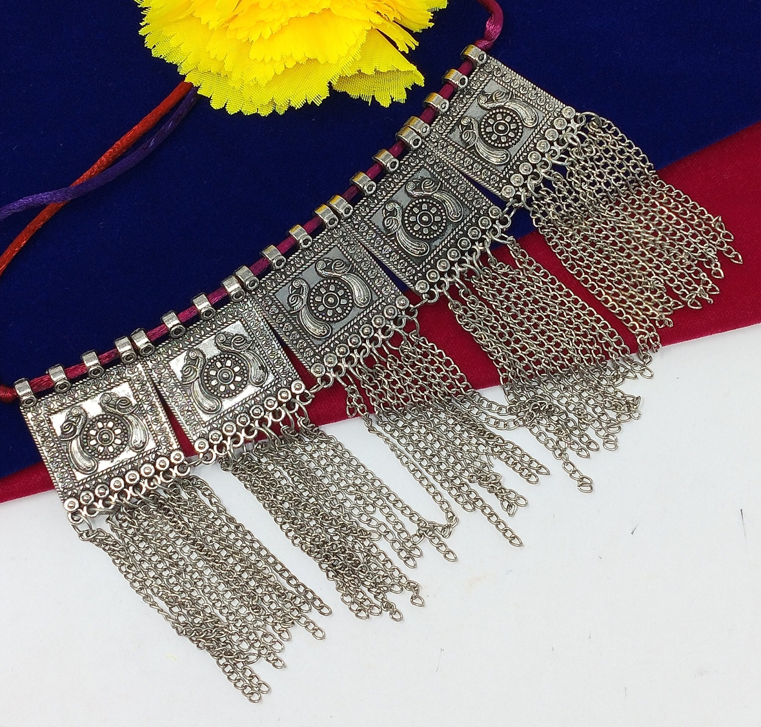 Indulge in the splendor of this magnificent jewellery set fit for royalty. Crafted from silver-plated brass and adorned with stunning stones, it radiates elegance and grace. The necklace and matching earrings create a harmonious ensemble, designed to captivate with their cascading beauty. Every detail has been carefully crafted, ensuring a regal vibe that exudes sophistication. Wear this extraordinary set to elevate any occasion and bask in the royal allure it brings.