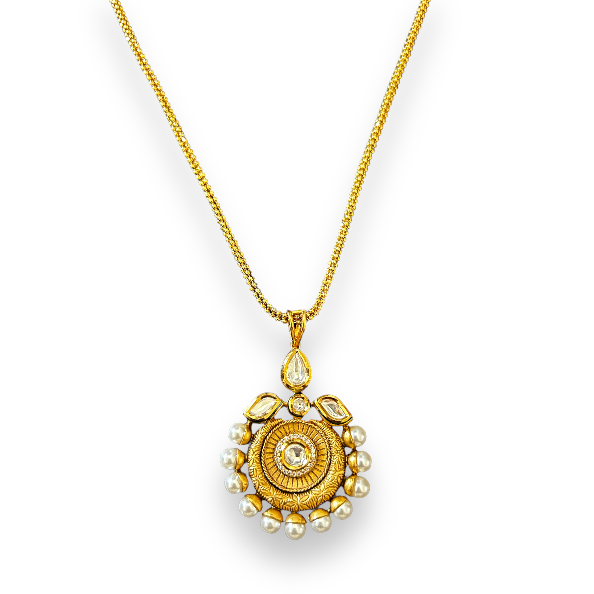 Statement Pearl Red Kundan Pendant And Earrings Set