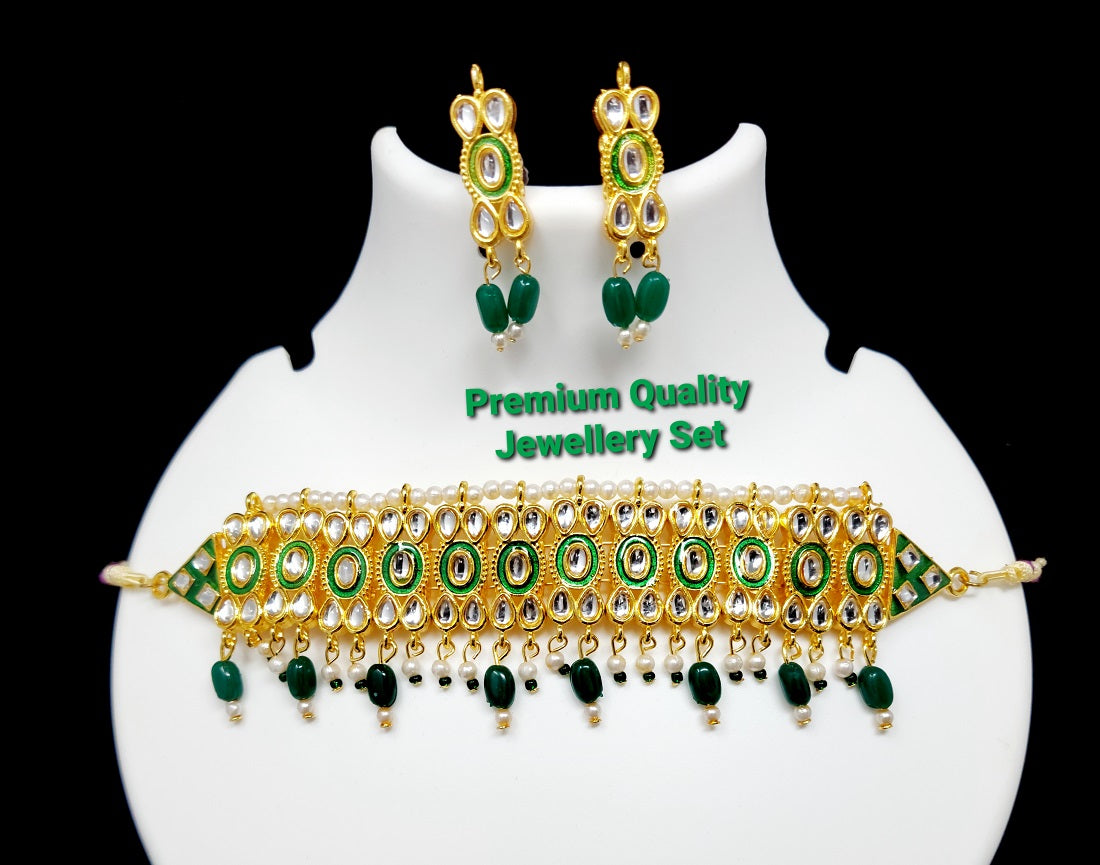 Be the first to review “Stunning Royal Green Kundan Choker Jewellery Set”