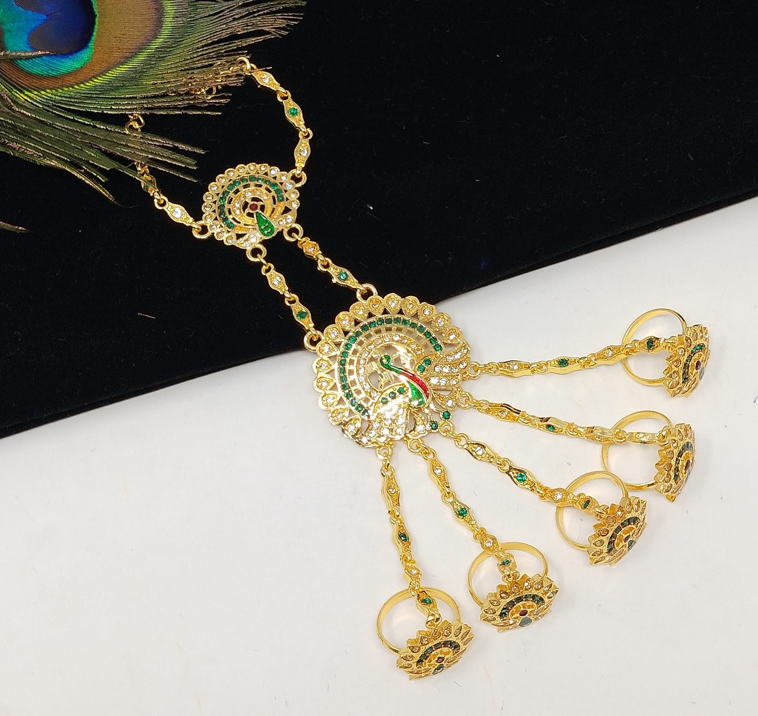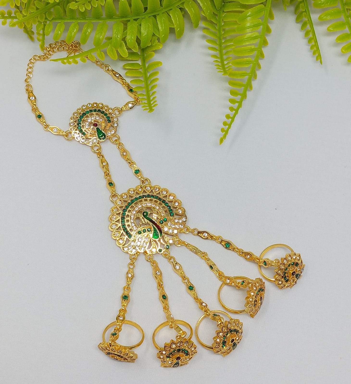Traditional Gold Plated Diamond Studded Hath Phool Bracelets