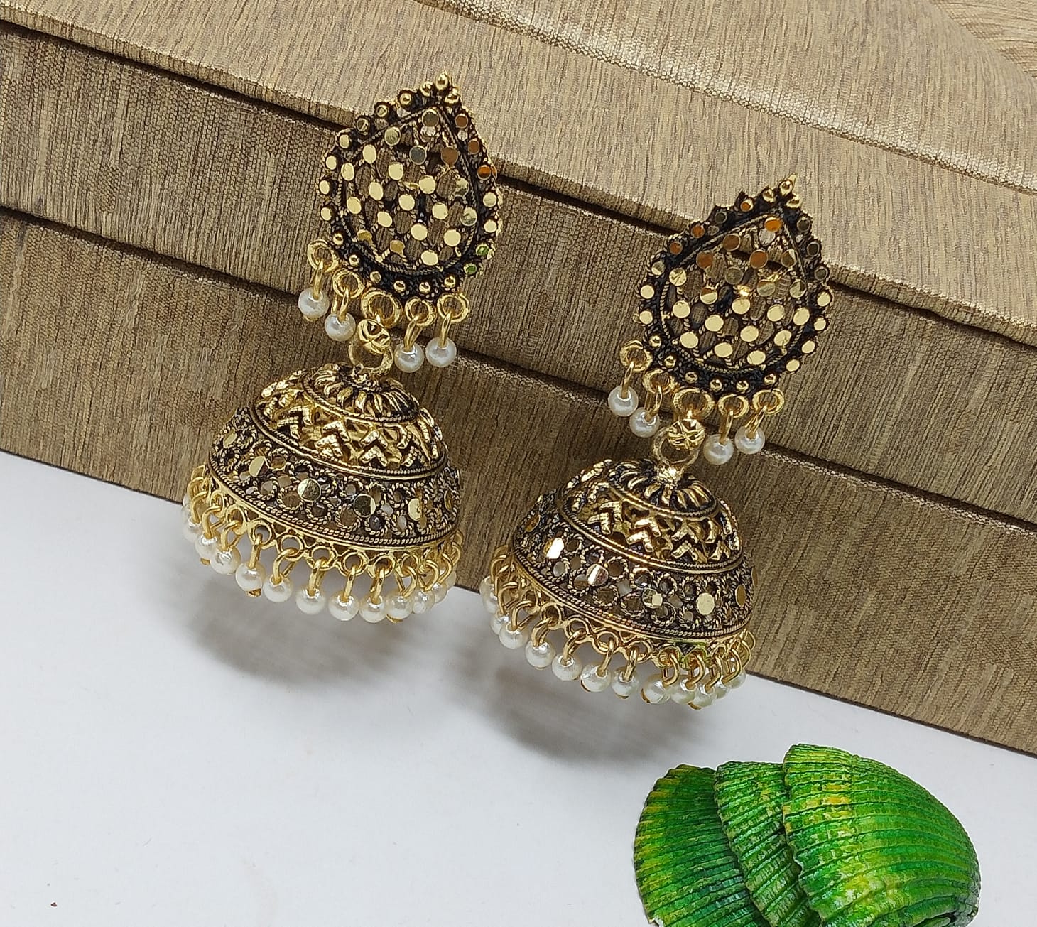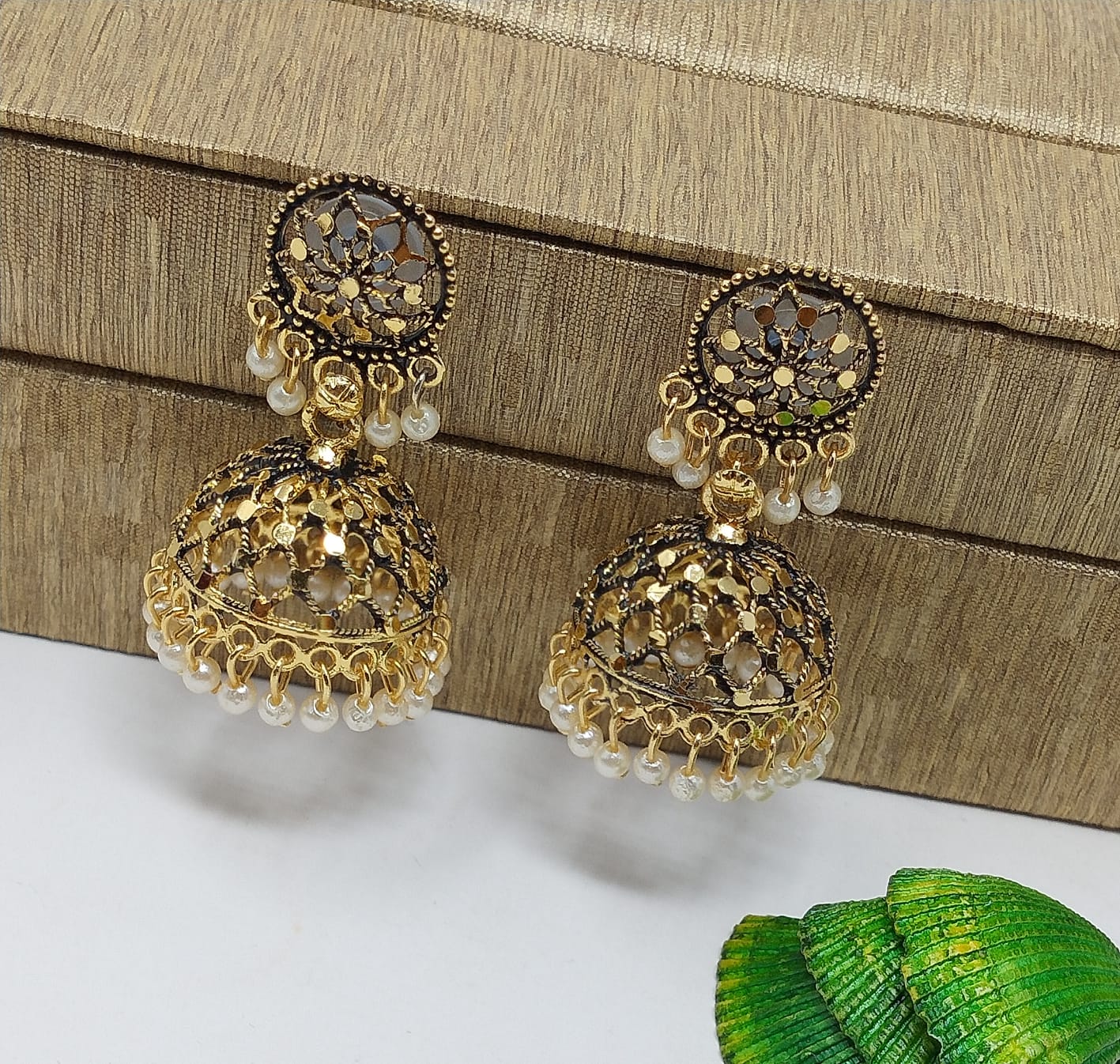 Introducing our exquisite collection of Traditional Golden Jhumka Earrings. These timeless pieces capture the essence of elegance and add a touch of regal charm to any outfit. Handcrafted with intricate detailing, our jhumkas are a true testament to traditional craftsmanship. Elevate your style with these captivating treasures