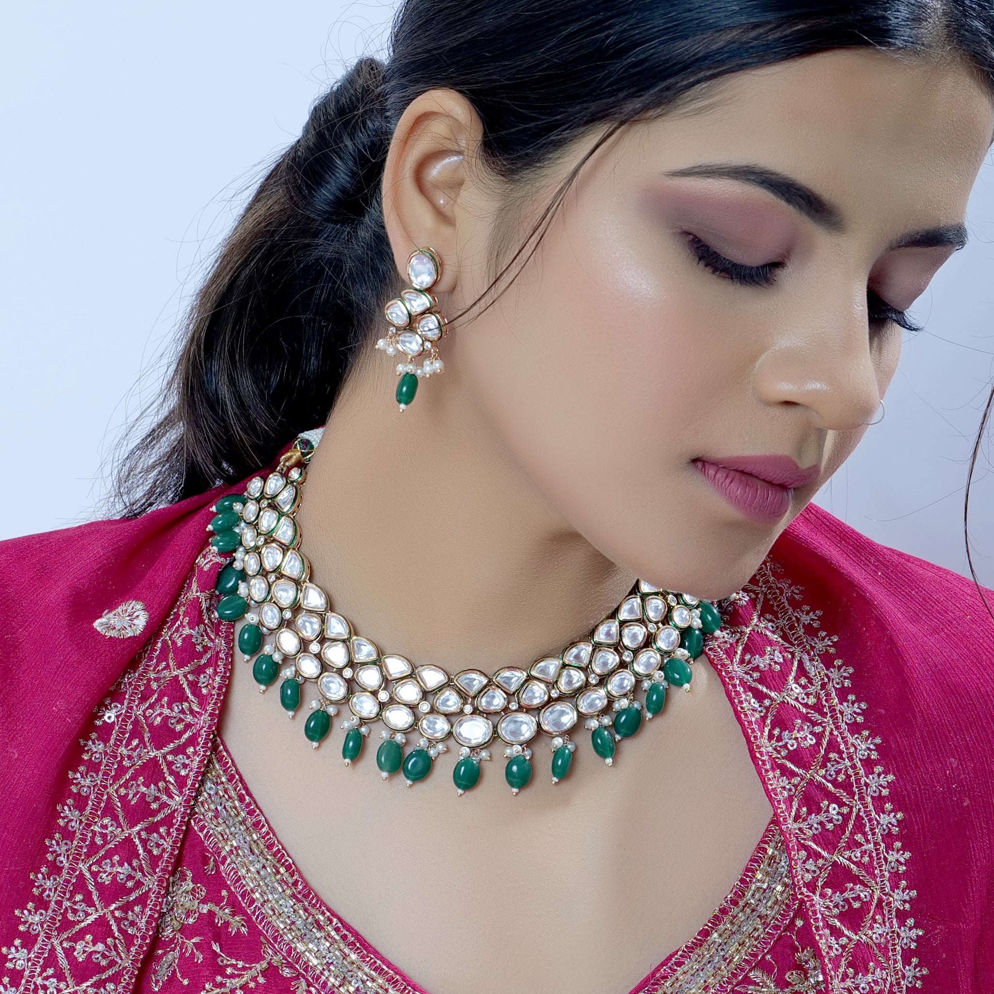 Traditional Green Pearl Polki Kundan Choker Jewelry Set