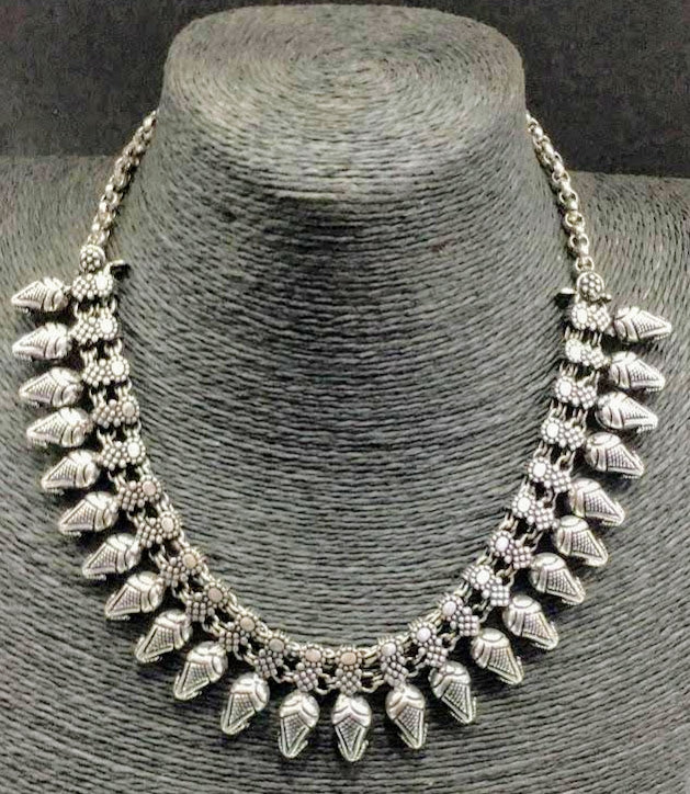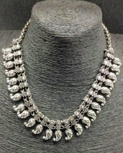 The Vintage German Silver Heritage Necklace is versatile and can be paired with both traditional and contemporary outfits. For a classic look, style it with a simple silk saree or an elegant Anarkali suit. For a more modern twist, layer it over a solid-colored dress or a crisp shirt for a fusion look.